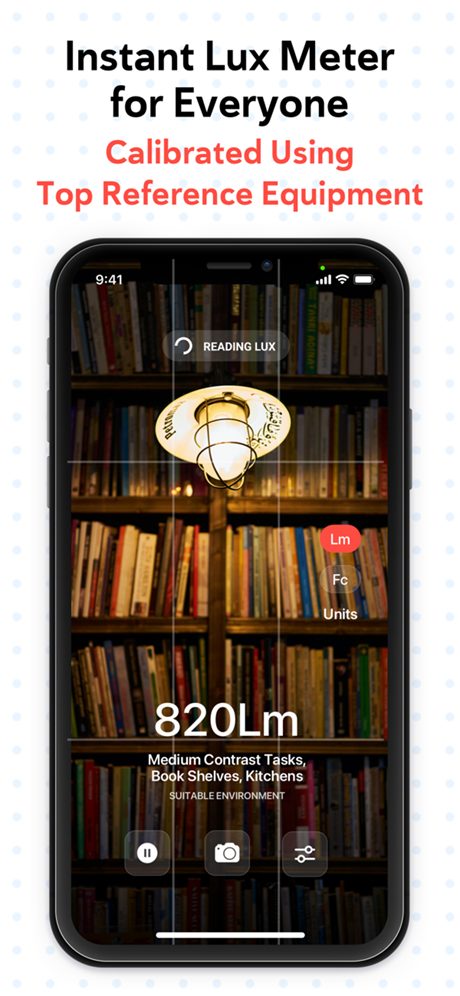 ‘Pocket Lux Meter’ transforme votre iPhone ou iPad en un luxmètre professionnel et facile à utiliser. Il est basé sur la compensation d’exposition interne, ce qui en fait l’application de luxmètre la plus précise. Configurez rapidement les paramètres d’éclairage de votre serre, votre salon, votre lieu de travail et votre poste de travail, éclairez brillamment votre salle d’étude, fournissez un niveau d’éclairage confortable sans trop d’éblouissement. Vous pouvez mesurer le lux d’une source lumineuse en lx et en pied-bougie sans avoir à dépenser un dollar pour des appareils professionnels.