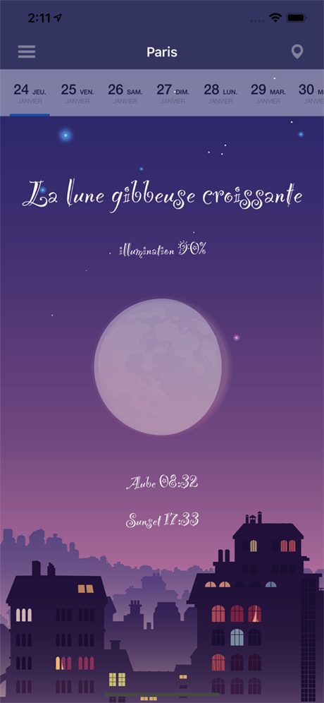 Avec Phase Lunaire, vous avez toujours à portée de main l’aspect différent que la Lune à la Terre montre pendant son mouvement. Consultez le calendrier intégré pour voir les cycles lunaires passées et futures. Vérifiez le lever et le coucher du soleil en temps réel. Le mode de jour et de nuit est activé automatiquement sur la base de lever et coucher du soleil. Tout cela a fait avec des graphismes spectaculaires, ce qui rend unique et agréable.