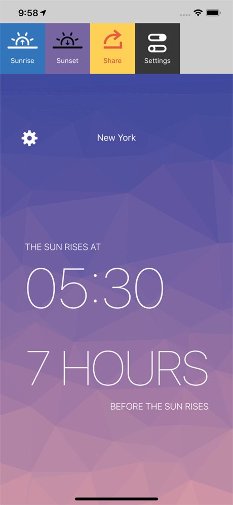 Voulez-vous être notifié 30 minutes ou 1 heure avant le coucher du soleil ou le lever du soleil ? Asseyez-vous et oubliez-le, Lux est portatili cette offre sur le temps et pour l’éternité. Activer la notification lever ou le coucher du soleil, et de jeux en temps. Notre algorithme synchronise les notifications à l’heure de changer de lever et de coucher.