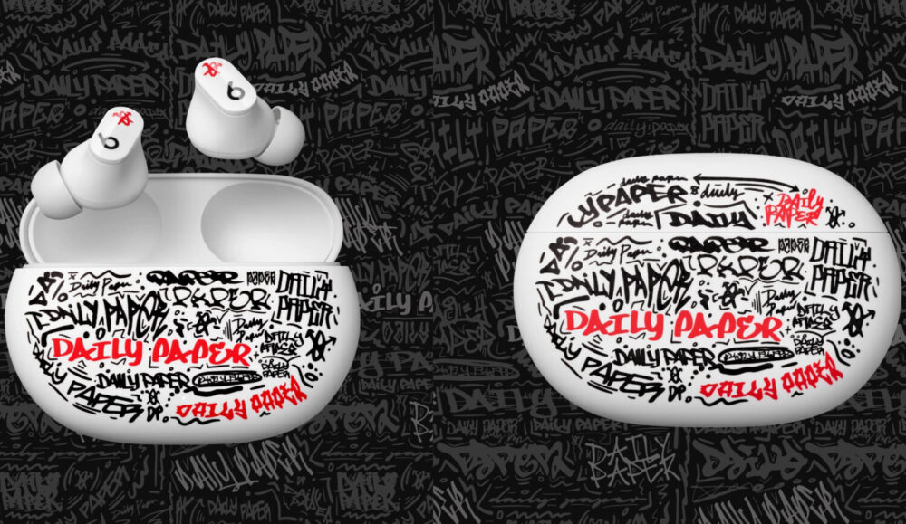 Dans cette version, les Beats Studio Buds ont un étui estampillé de la marque Daily Paper en graffiti en noir et en rouge ainsi que le logo Daily Paper. La description fournie pour l’édition limitée des Beats Studio Buds en collaboration avec Daily Paper est la suivante: