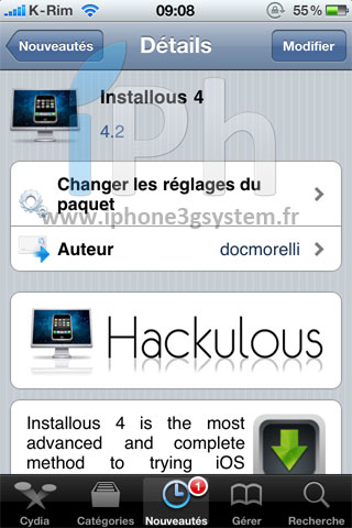 je viens de JailBreak mon iPod en 4.2.1 et l’image de Installous n’a pas les engrenages de derriere…Pourquoi???!!