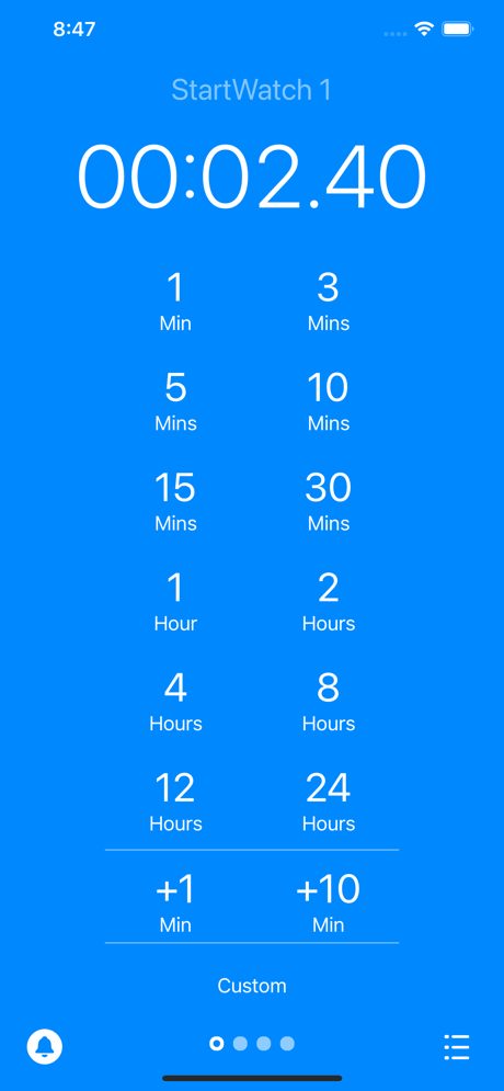 Démarrez le chronomètre instantanément, puis transformez-le en minuterie. La plupart des minuteries sont imprécises car il faut 5 à 30 secondes pour régler la minuterie alors que le temps s’écoule. Avec StartWatch, vous démarrez le chronomètre comme un chronomètre, puis vous pouvez prendre tout le temps nécessaire pour régler l’alarme.