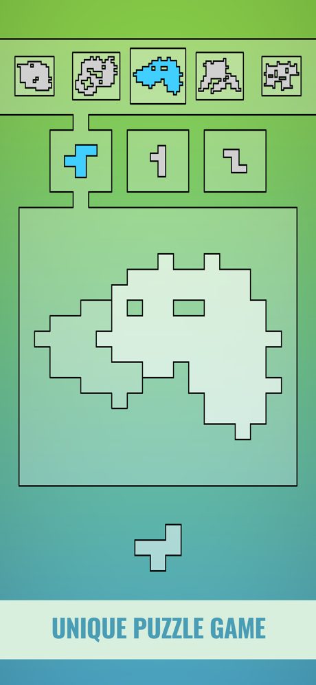 Relaxant puzzle abstrait casse-tête parfait pour les amateurs de jeux de puzzle comme Jigsaw ou Tangram. L’objectif est simple: remplir la forme générée trois fois en utilisant différents types d’omino.