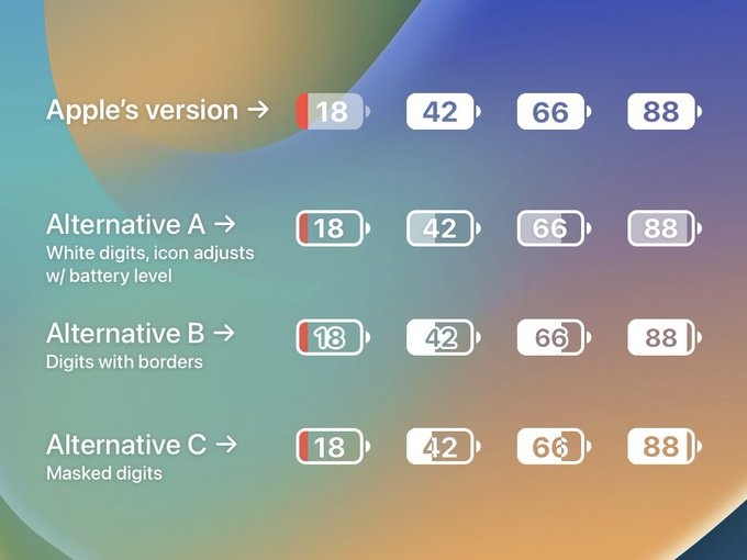 L’arrivée du pourcentage de batterie sur les iPhone avec une encoche sera très utile pour certains utilisateurs (pour d’autres, ce sera sans doute qu’une fonctionnalité gadget). Cependant, sans trop prendre la tête, il est possible de voir qu’Apple a décidé de l’ajouter à la hâte, sans en fournir trop d’attention. Mais le constructeur pourrait prendre son temps et faire mieux en proposant une meilleure implémentation du pourcentage de batterie sur les iPhone avec encoche. En effet, l’image ci-dessous montre quelques alternatives qu’Apple pouvait proposer. Espérons que le constructeur d’iPhone ait l’idée (ou l’envie) de nous proposer une de ces alternatives. Pourquoi pas l’alternative A ?