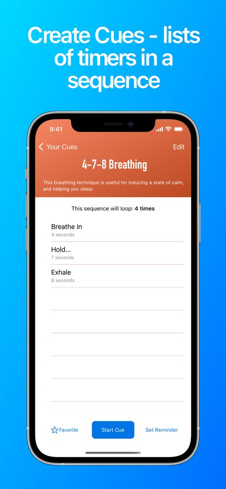 Créez des repères avec Cue It! Un Cue est une liste de plusieurs minuteries dans une seule séquence – lorsqu’une minuterie se termine, la minuterie suivante démarre immédiatement ! Si vous avez besoin de garder une trace du temps pendant que vous vous entraînez, cuisinez ou faites autre chose selon un horaire chronométré, une minuterie globale peut être trop large pour vous aider à suivre le temps pour des tâches spécifiques. Cue It s’en charge en vous permettant de créer et de sauvegarder des Cues ! Lorsque vous démarrez un Cue, deux comptes à rebours s’affichent – un pour votre minuteur individuel actuel et un autre pour le temps restant au total. Si vous n’êtes pas en mesure de garder une concentration constante sur votre appareil, vous pouvez également activer des fonctionnalités telles que les effets sonores, les vibrations ou la narration par synthèse vocale chaque fois qu’un nouveau minuteur démarre.