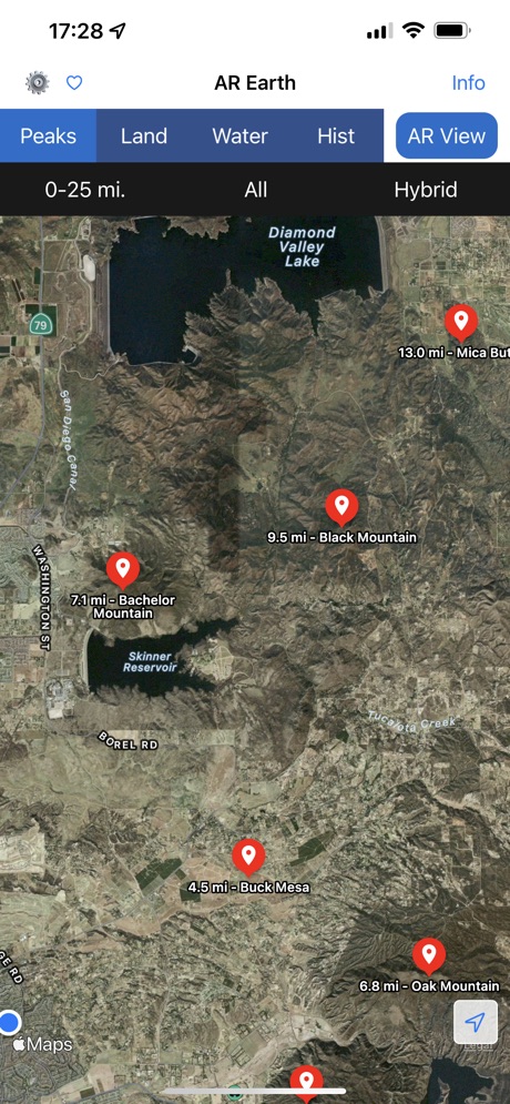 Vous voulez savoir ce que le nom de ce sommet de montagne ou l’altitude? C’est facile avec l’application AR Earth. Sélectionnez simplement « Peaks » puis « AR View » et pointez votre caméra dessus. Earth AR a des centaines de milliers de lieux résidant dans sa base de données, vous pouvez donc l’utiliser hors ligne à peu près partout dans le monde. L’application comprend une base de données résidente d’articles de Wikipédia.