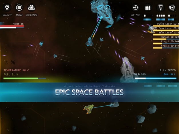 Galaxy Genome est un simulateur spatial de science-fiction en monde ouvert. Vous pourrez améliorer votre vaisseau et personnaliser chaque composant pendant que vous chassez, explorez, combattez, extrayez, faites de la contrebande, faites du commerce et survivez dans la galaxie fardée. Suivez l’histoire principale ou faites des missions secondaires. Ce jeu vous donne la possibilité de ressentir une véritable exploration spatiale. L’intégralité de la Voie lactée recréée dans ses proportions galactiques complètes.