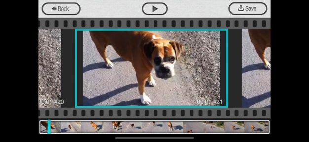 StillShot peut vous aider à créer des photos de haute qualité à partir de n’importe quelle vidéo sur votre iPhone. StillShot peut être utile lorsque des objets sont en mouvement et qu’il est difficile de saisir le moment ou lorsqu’une vidéo a déjà été prise au lieu d’une photo fixe. Avec StillShot, les utilisateurs peuvent créer une photo en pleine résolution à partir de fichiers vidéo en chargeant la vidéo et en analysant les images une par une, permettant à l’utilisateur de choisir la meilleure image. L’application peut extraire des images de n’importe quelle vidéo, sans exigences particulières. StillShot conserve la résolution d’origine de la vidéo, par exemple, sur l’iPhone 4s, la résolution est de 1080p (1920*1080px).