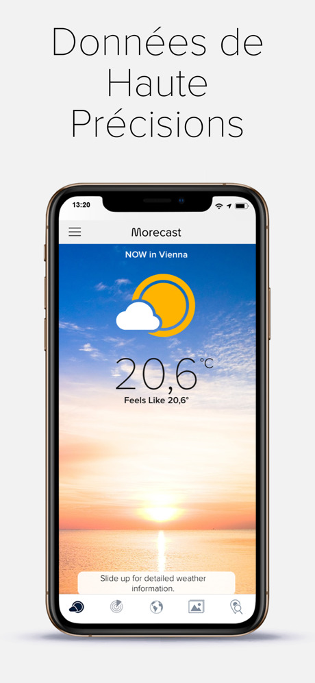 MORECAST est votre appli météo premium GRATUITE ! L’appli météo MORECAST fournit à des millions d’utilisateurs les données météo les plus précises et hyper locales où que vous soyez. Cette appli météo GRATUITE fournit des données météo horaires, des infos détaillées sur le vent et les rafales, un suivi des chutes de neige, des données radar, la météo de vos trajets et des webcams. MORECAST est votre compagnon météo, de Paris à Genève en passant par San Francisco.