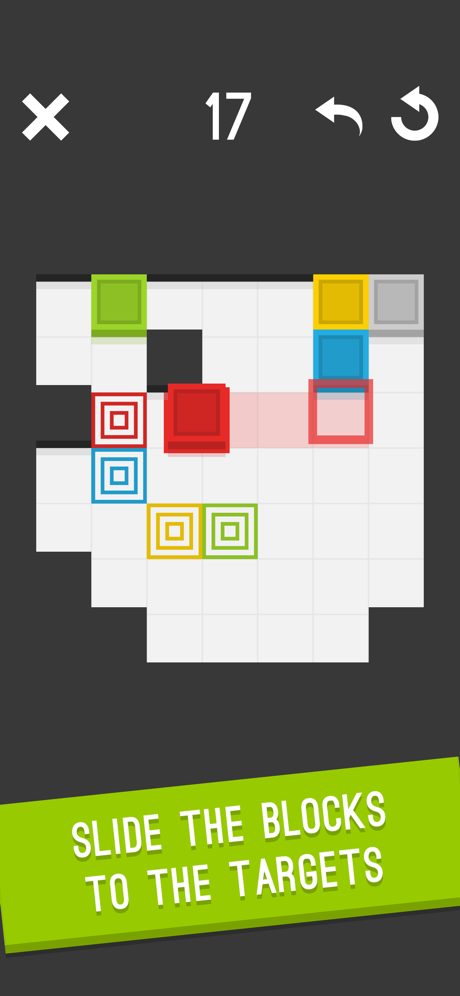 Blicke est un jeu de puzzle unique dans lequel vous devez faire glisser les blocs colorés sur le plateau pour amener chacun d’eux à sa cible. Recommandé pour tous les âges ! Les blocs glissent jusqu’à ce qu’ils touchent un mur ou un autre bloc, vous mettant au défi de comprendre comment utiliser vos pièces comme support pour créer de nouveaux chemins et battre les 100 niveaux faits à la main. Il n’y a pas de limite de temps ou de nombre de mouvements. Il vous met au défi de simplement compléter les puzzles.
