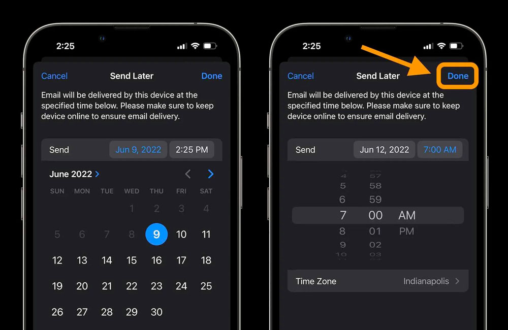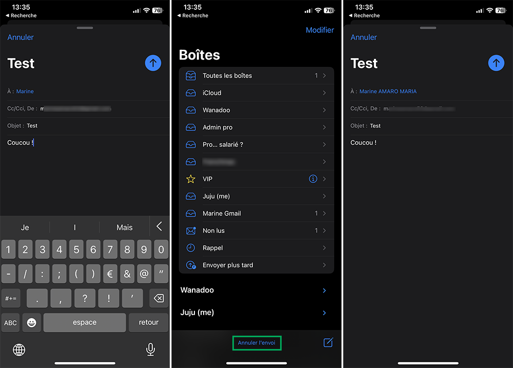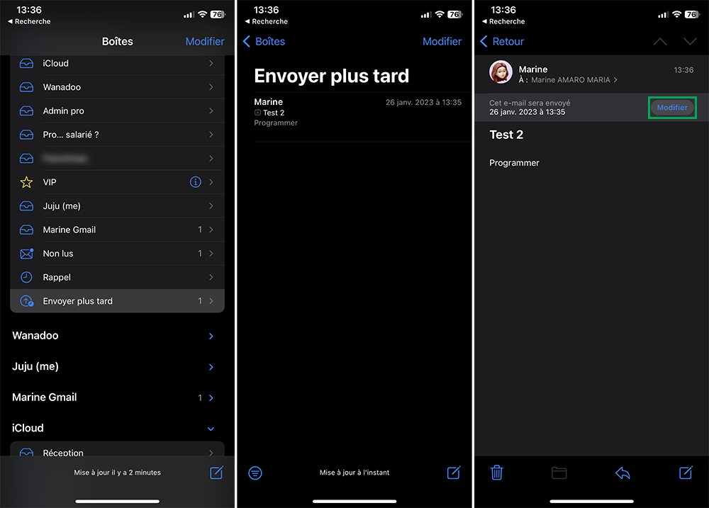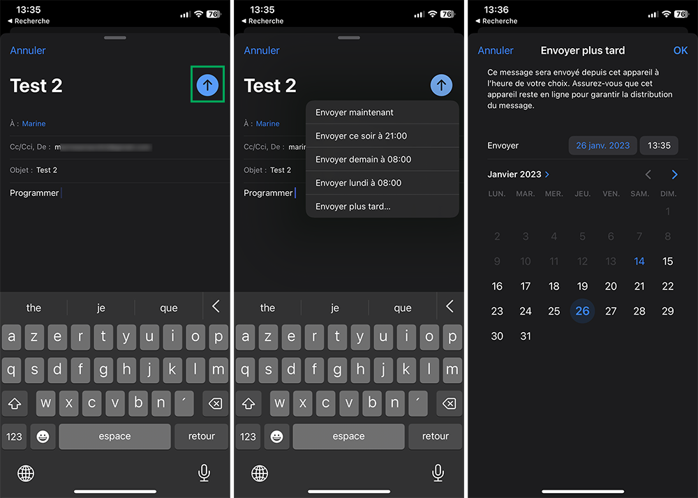 2. Programmer, reporter ou annuler l’envoi d’un e-mail sur iPhone avec iOS 16