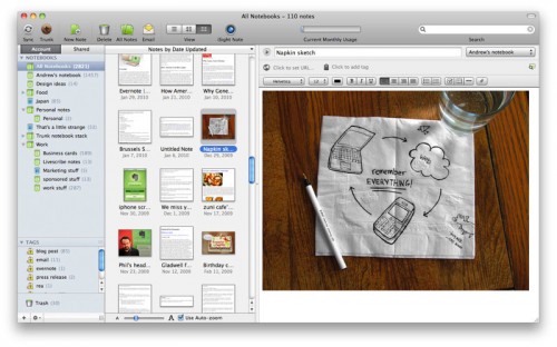 L’excellente application Evernote a été mise à jour en version 4. Cette application, rappelons le, vous permet de prendre des notes audio / photos / textes etc.. très très rapidement. De plus, une application Mac existe également se synchronisant automatiquement via des serveurs. Ainsi, la version 4 propose maintenant une interface totalement repensée (certains reconnaitront l’inspiration twitter) ainsi que de nouvelles fonctionnalités.