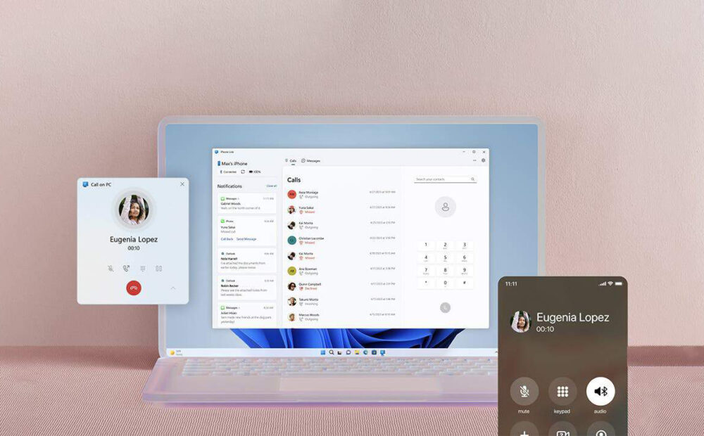 Microsoft annonce que Phone Link pour iOS requiert un iPhone qui tourne sous iOS 14 (ou une version plus récente), un appareil équipé de Windows 11, une connexion Bluetooth et la dernière version de l’application Phone Link. L’application n’est pas disponible pour iPad ni pour Mac.
