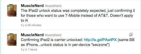 Petit aparté : Pour ceux qui nous demandaient mais qui n’avait pas la confirmation (enfin elle est sur iPadSystem…), MuscleNerd confirme que l’iPad 2 n’est pas simlocké à son achat :