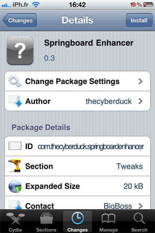 SpringBoard Enhancer est un nouveau tweak disponible sur cydia qui va vous permettre d’améliorer le layout de vos icônes. En effet, ce tweak regroupe plusieurs tweak en un seul en vous donnant la possibilité d’avoir 5 rangées d’icônes sur votre SpringBoard, ou encore 5 rangée d’icônes dans vos dossiers, ou 5 rangées d’icônes dans le dock multitâche ou enfin la possibilité de placer vos icônes comme vous le voulez, tout comme le fait GridLock.