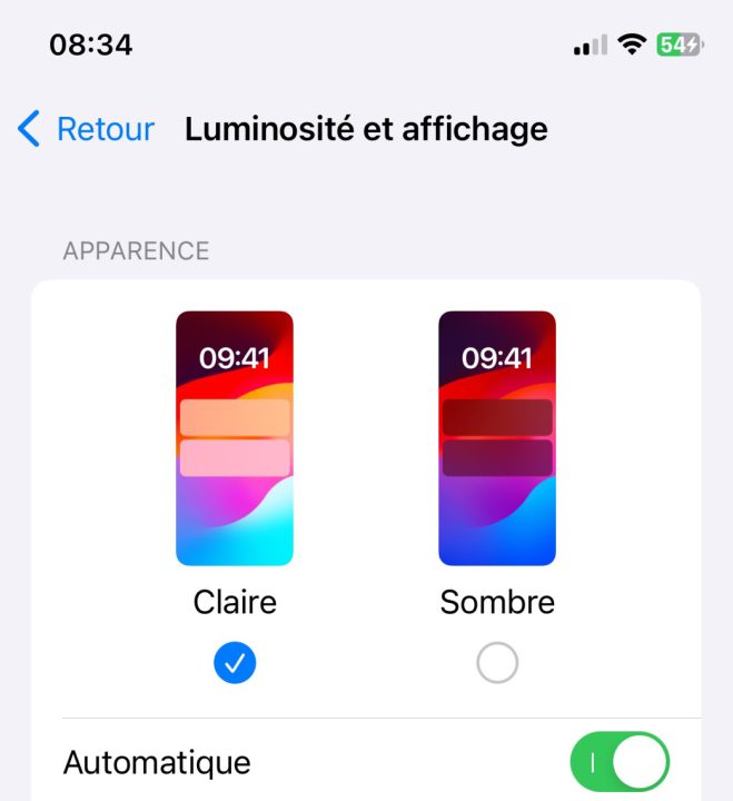 - L’icône du fond d’écran dans la section « Luminosité et affichage » dans l’application Réglages a subi une modification. À présent, celui-ci est désormais le même que le fond d’écran officiel d’iOS 17.