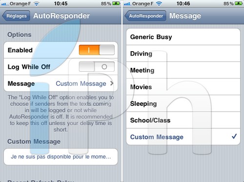 AutoResponder est un nouveau tweak développé par GSquared qui va vous permettre de répondre par SMS customisé ou prédéfini suite à un SMS entrant.