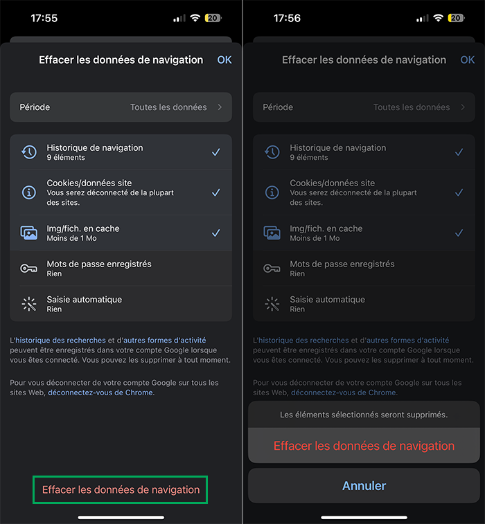 Vous pouvez maintenant, et à tout moment supprimer les cookies, et autres données de navigation, sur votre iPhone avec Safari et Google Chrome.