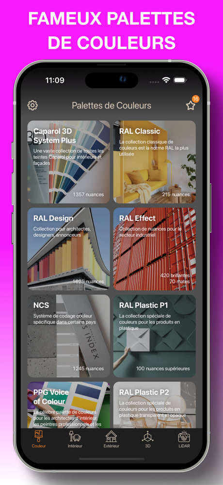 Très souvent, de nombreuses personnes ressentent le besoin d’imaginer visuellement l’intérieur d’une pièce ou l’apparence d’un bâtiment. Il existe de nombreuses applications qui peuvent le faire de manière détournée sans offrir la possibilité de voir l’image réelle en ligne. Nous avons créé cette application pour une telle occasion ! Des milliers de couleurs et de nuances des palettes de couleurs les plus répandues dans le monde contenues dans l’application aideront les concepteurs, les ingénieurs et les personnes ordinaires de n’importe quel coin du globe à profiter de la possibilité de voir la perception visuelle de votre intérieur ou extérieur de la maison. Avec l’aide des technologies modernes fournies par les gadgets Apple, nous avons mis en œuvre la possibilité de peindre des surfaces en utilisant la caméra des appareils dotés de l’équipement approprié (scanner LiDAR) et le rendu des couleurs le plus réaliste. L’interface de l’application est très conviviale, nous espérons que vous apprécierez sa simplicité et sa fiabilité. Nous sommes certains que cette application est le meilleur e-catalogue de couleurs au monde, créé pour répondre à vos désirs !