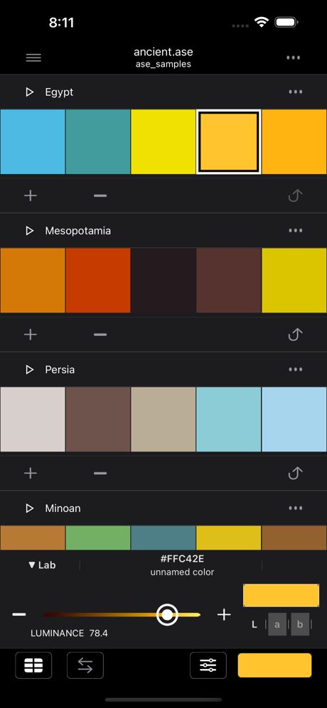 Puissant éditeur de palettes ASE (Adobe Swatch Exchange) pour iPhone et iPad.