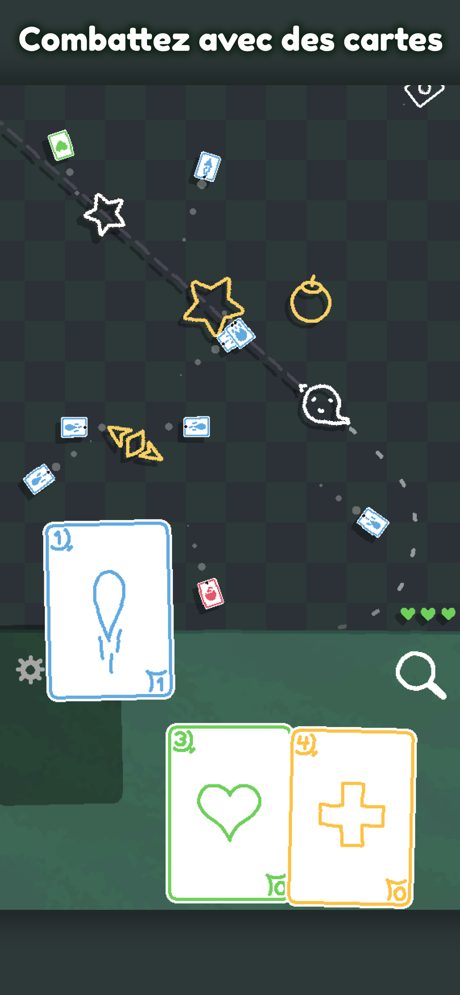 Heck Deck est à la fois un jeu de cartes et un bullet hell où les balles sont des cartes et où les éléments se déplacent en même temps que vous. Parcourez 5 niveaux remplis d’ennemis et de boss uniques, découvrez des dizaines de cartes, et achetez ou vendez des cartes pour gagner de l’énergie ! À travers 5 niveaux différents, Heck Deck mettra à l’épreuve votre précision et votre dextérité pendant les phases où les balles pleuvent, mais aussi votre sens stratégique lors de l’utilisation de vos cartes. Vous devrez ramasser les cartes avec prudence, car chacune vous coûtera au moins un point de vie.