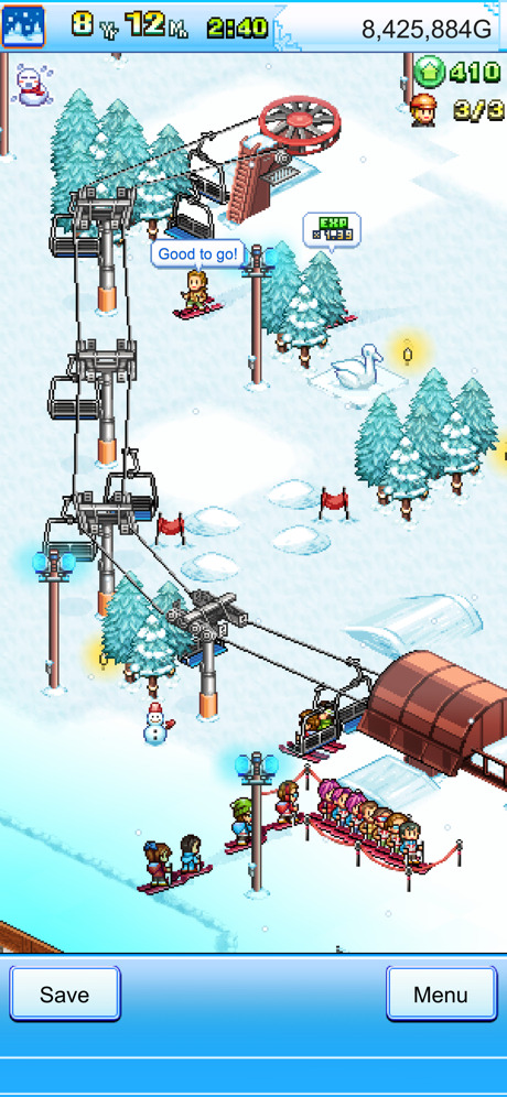 Votre histoire commence avec un petit hôtel sur une montagne enneigée. Développez un terrain pour construire un parcours de ski spectaculaire et obtenez des matériaux à utiliser dans la construction de nouvelles installations hôtelières. Rendez votre hôtel populaire et votre cours de ski en bénéficiera également ! De plus, vous serez en mesure de fabriquer des produits à vendre dans les magasins d’hôtels et de restaurants. Développez votre cours de ski et regardez vos invités perfectionner leurs compétences jusqu’à ce qu’ils deviennent des professionnels du ski, puis demandez-leur de représenter votre station lors de concours de ski, en arborant des articles sponsorisés. Aidez votre coureur à réaliser des figures impressionnantes sur les tremplins à ski pour remporter la course, et vos sponsors vous récompenseront généreusement et vous valoriseront encore plus.