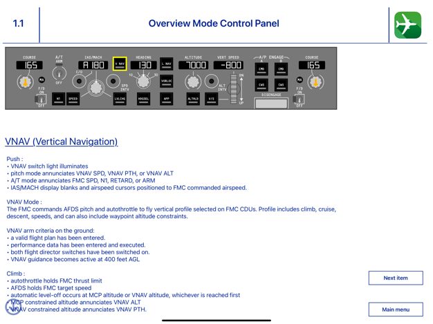 FMA Trainer B737 est une application qui vous aidera à comprendre et à améliorer vos connaissances sur les annonces de mode de vol sur le MCP et le PFD à bord du Boeing 737NG ou MAX. De nombreux (nouveaux) pilotes ont du mal à comprendre complètement le système, notamment les relations entre phase de vol, MCP et les FMA du PFD. Cette application vous aidera à comprendre et à utiliser ce système compliqué.
