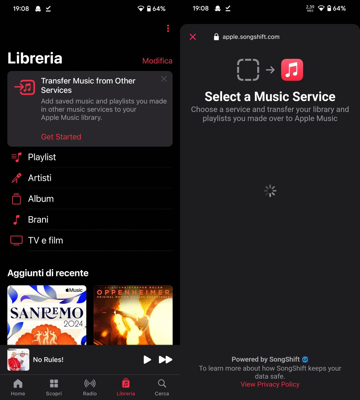 Ce nouveaut système serait en cours de test sur la version bêta de l’application Apple Music sur Android et il est constaté que le transfert s’appuie sur… SongShift ! C’est en effet ce que certains utilisateurs ont pu remarquer au sein de la nouvelle bêta de l’application Apple Music sur les appareils Android.