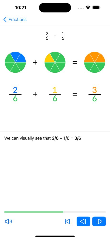 L’application Fraction Steps est un excellent moyen d’apprendre et de pratiquer les fractions de manière visuelle et intuitive. Que vous soyez étudiant ou que vous cherchiez simplement à perfectionner vos compétences en mathématiques, notre application de fractions est l’outil parfait pour vous ! C’est tellement amusant et visuel.