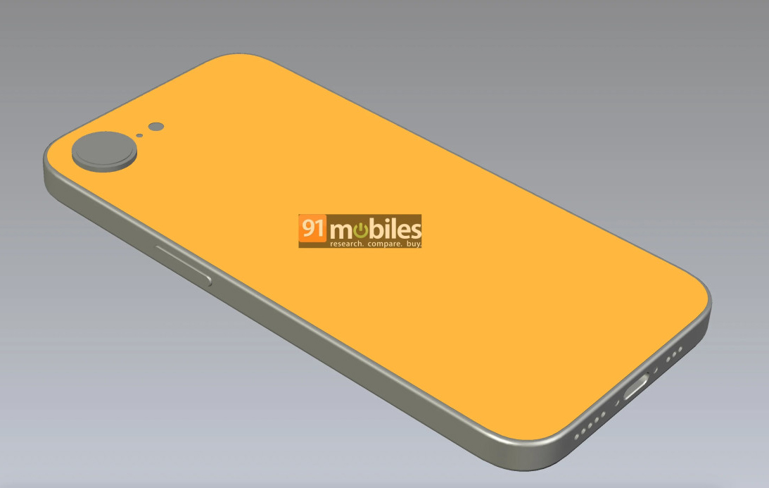 Outre, les tranches sont plates sur le nouvel iPhone SE ; elles sont arrondies sur l’iPhone SE 3. Les rendus montrent aussi le port USB-C et un seul capteur photo au dos.
