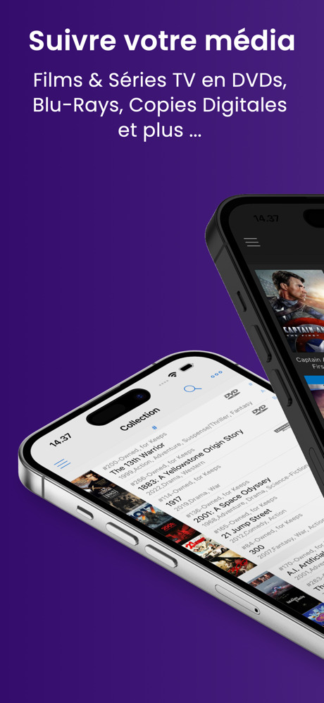 My Movies est l’application #1 pour gérer votre collection de Film et Série TV! Scannez le code-barre de vos 4K Ultra HD, Blu-ray et DVDs, et plus jamais d’achat doublon. Les services de la communauté My Movies ont des données pour plus de 1500000 disques dans le monde entier, plus de 125000 films et 100000 séries TV, afin de suivre votre collection de disques et copies digitales sur tout service VOD.