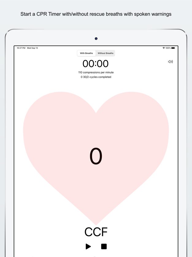 Cette application est un outil qui vous aide à maintenir le rythme de compression pendant la réanimation cardio-pulmonaire (RCR). Cette application a été développée en étroite collaboration avec des ambulanciers paramédicaux qui sont souvent confrontés à des situations dans lesquelles la RCP est nécessaire et lorsqu’aucun défibrillateur n’est disponible à proximité.