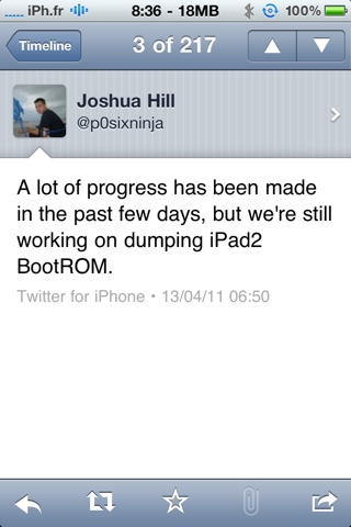 Beaucoup de progrès ont été fait ces derniers jours, mais nous travaillons encore sur le bootrom de l’iPad 2