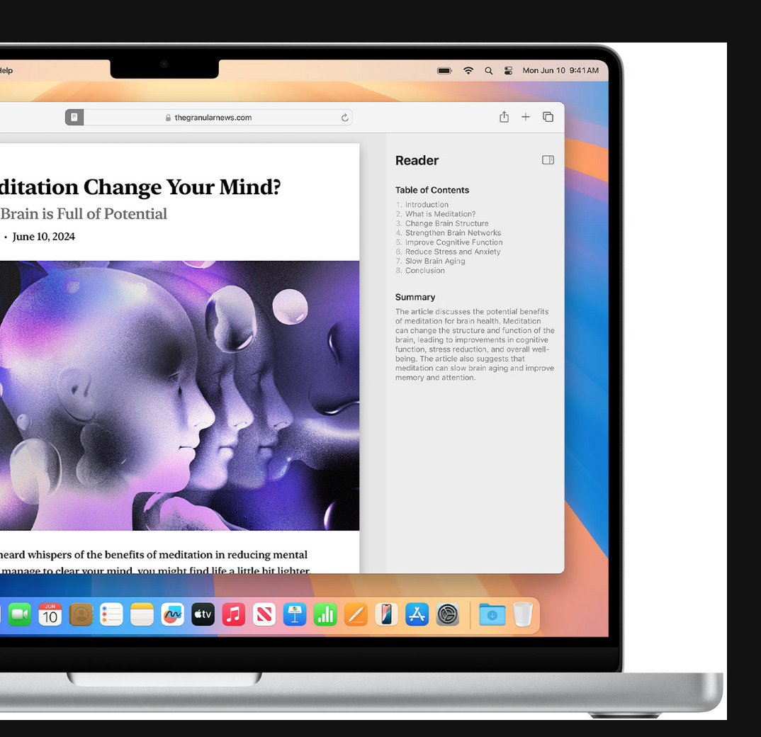 Le nouveau lecteur de Safari embarque une table des matières et un résumé de haut niveau. Il vous permet d’obtenir l’essentiel d’un article avant de poursuivre la lecture.