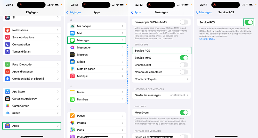 Votre iPhone est à jour (minimum iOS 18) et votre opérateur est compatible ? Super ! Activons le RCS :