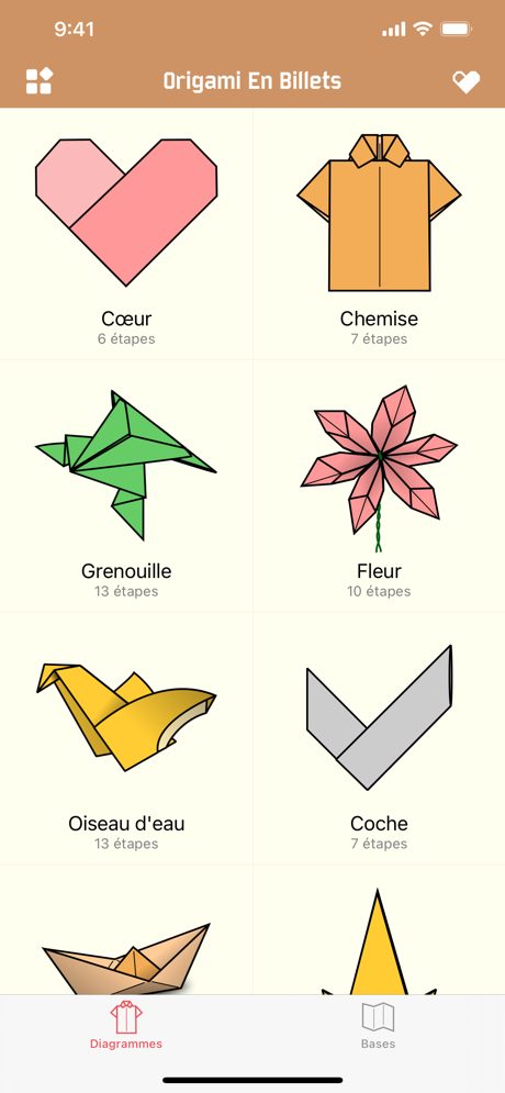 Origami En Billets vous apprend à créer des formes magnifiques en utilisant uniquement un billet. Pliez des billets pour fabriquer un cadeau monétaire mémorable, laisser à quelqu’un un pourboire très spécial ou divertir vos amis. Un simple billet devient soudainement une magnifique œuvre d’art ! L’ensemble des 30 formes d’origami incluent des instructions détaillées et des photos en haute qualité du produit fini. Chaque type de pliage d’origami est montré dans un guide visuel précis inclus dans l’application.