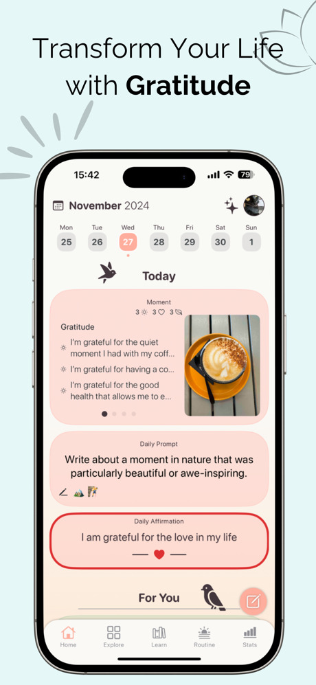 Découvrez le pouvoir transformateur de la gratitude et du soin de soi avec Gratefully. Cette application complète est conçue pour vous aider à cultiver la positivité, la pleine conscience et une vie plus heureuse.