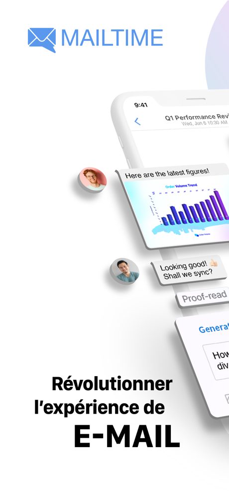 MailTime rend l’envoi d’e-mails aussi simple et rapide que de discuter par SMS. Notre application change le format de vos e-mails pour les faire apparaître comme des textos, tout en supprimant toutes les métadonnées inutiles. MailTime est productif et sans chichis grâce à notre boîte de réception intelligemment triée et à notre système de gestion des tâches.
