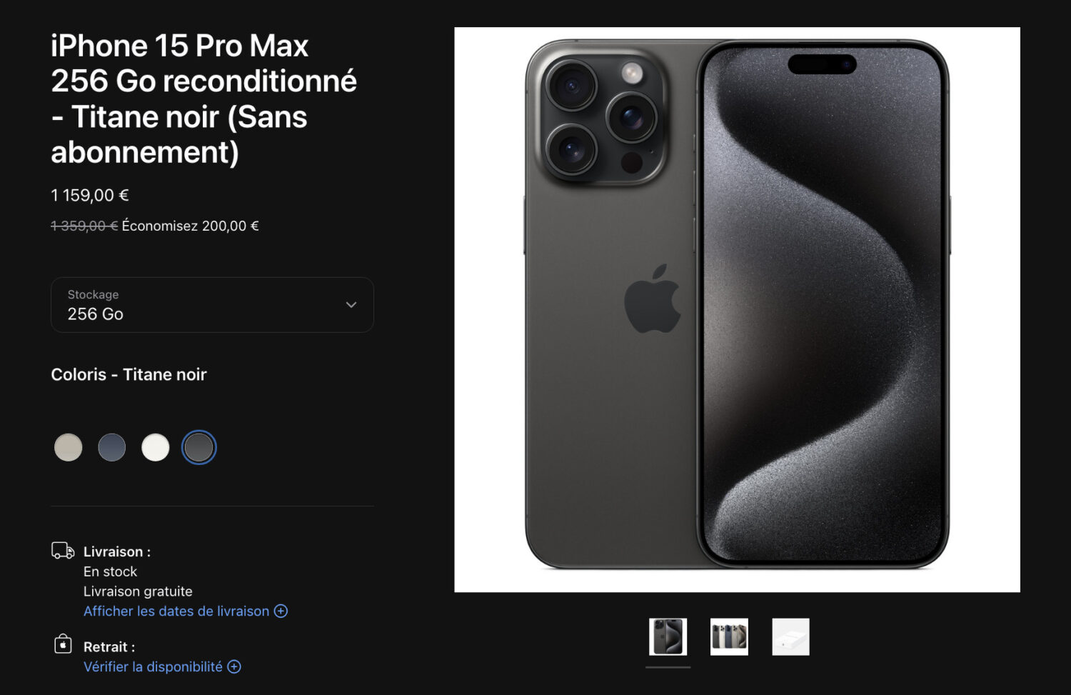 Après les iPhone 15, les iPhone 15 Pro Max reconditionnés sont à présent disponibles à la vente en France et dans certains autres pays européens.