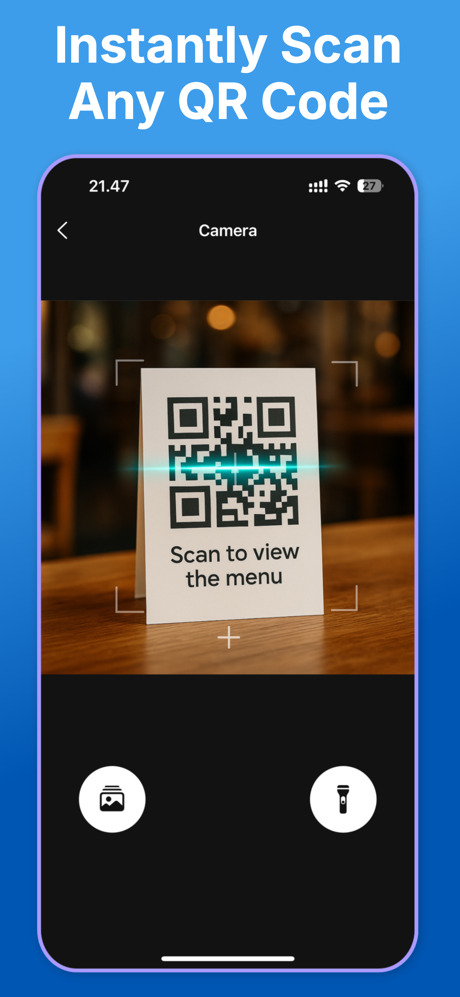 Scannez les codes QR depuis votre appareil photo ou vos photos. Enregistrez l’historique, effectuez des actions rapides et partagez vos résultats. Essayez QR Code Reader dès maintenant ! Scannez rapidement n’importe quel code QR, où que vous soyez et à tout moment. QR Code Reader simplifie et accélère la numérisation. Il vous suffit de pointer votre appareil photo ou de sélectionner une photo dans votre galerie. L’application détecte et lit instantanément tout code QR ou code-barres.