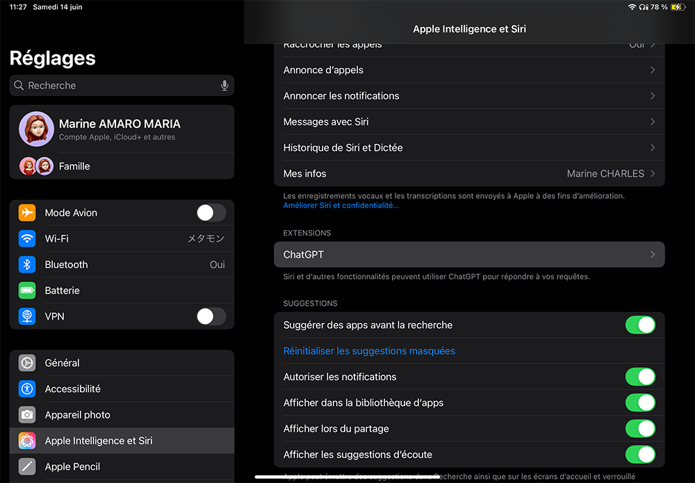 2.4.1. Revenez dans Réglages > Apple Intelligence et Siri > ChatGPT ;