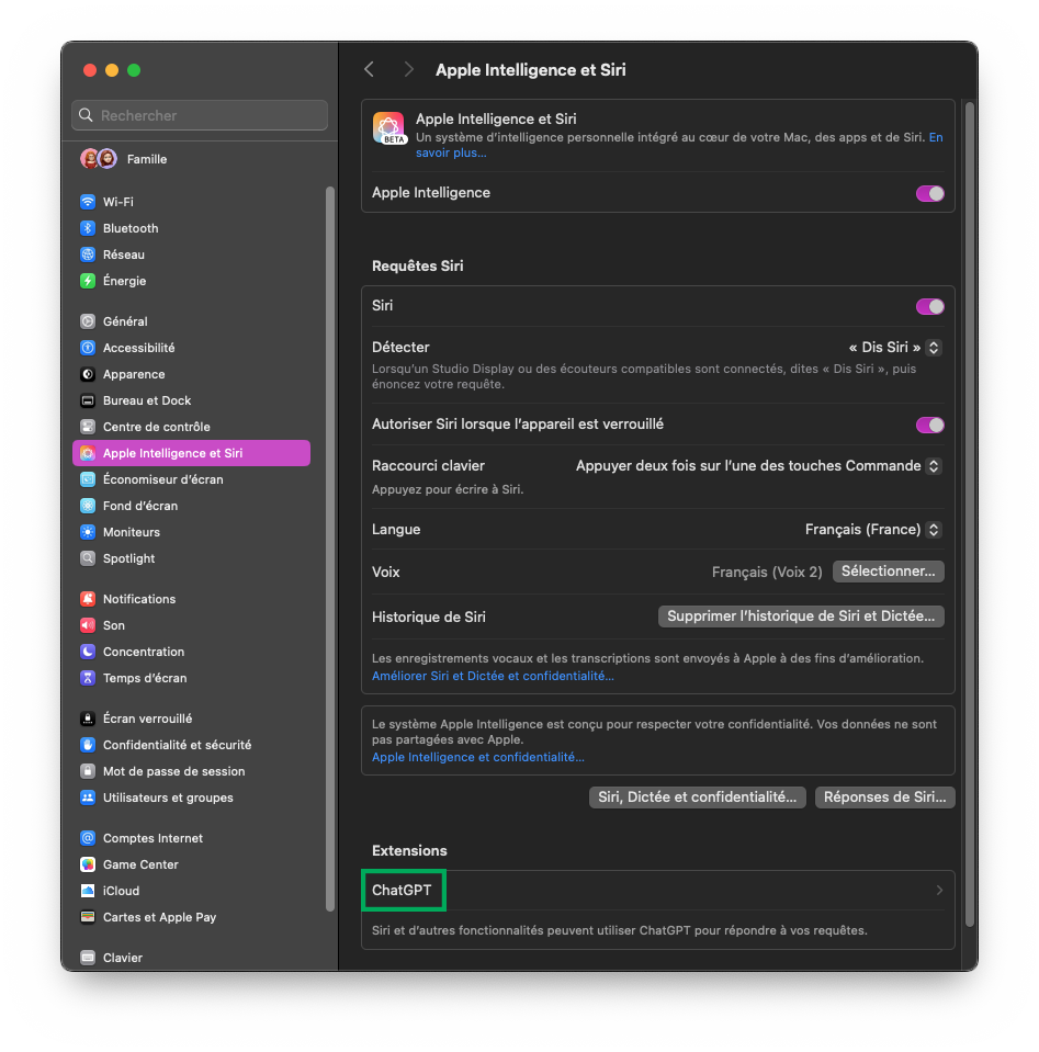 3. Configurer ChatGPT avec Apple Intelligence sur Mac