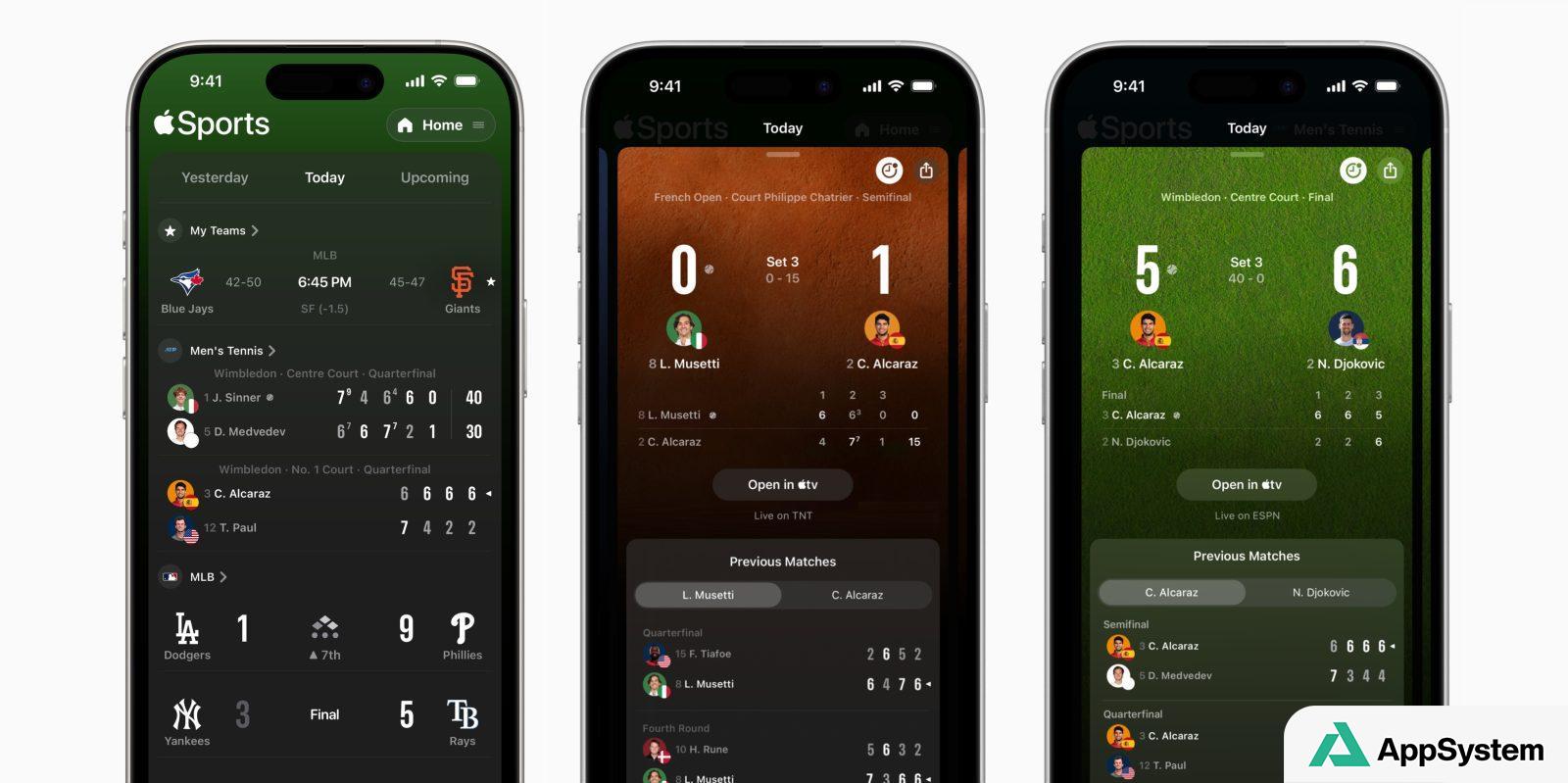 Apple affirme que son application Sports est le moyen le plus rapide pour suivre chaque point, avec des scores qui s’actualisent en direct dès le début des matchs.