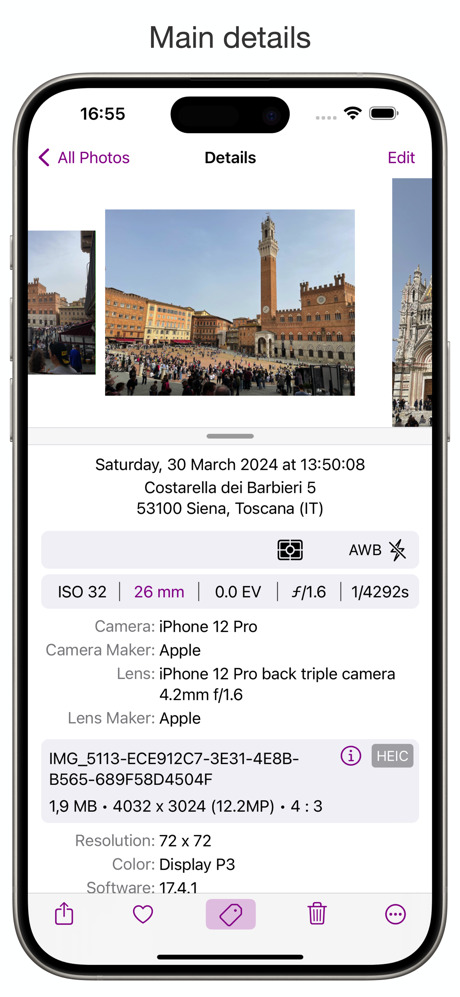 PhotInfo est une application permettant d’afficher, de modifier et de gérer les métadonnées des photos, telles que l’emplacement, les informations sur l’appareil photo, la date, l’heure, etc., directement depuis votre iPhone, iPad ou Mac.