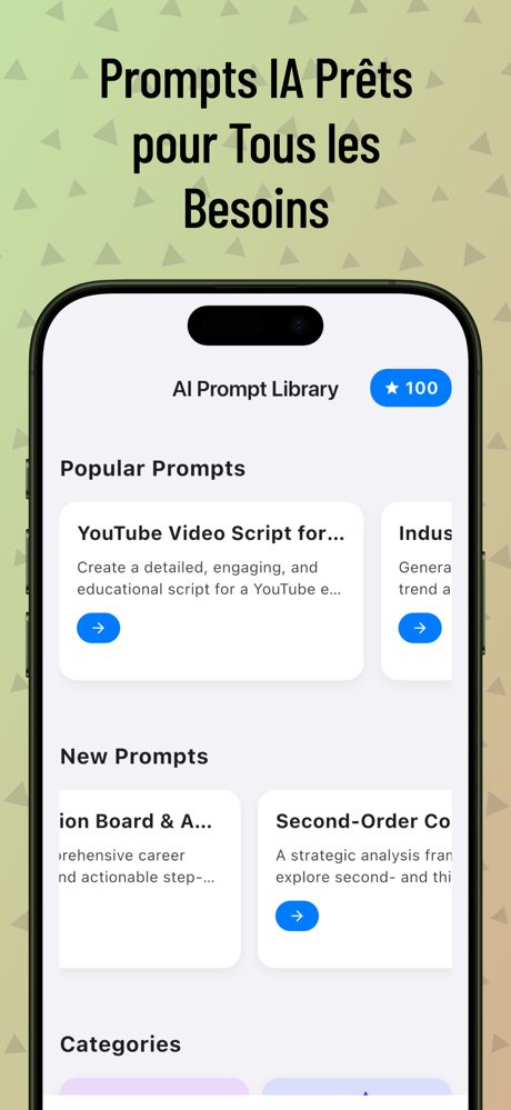Vous avez du mal à créer des prompts efficaces ? Vous voulez accélérer votre création de contenu sans effort ? AI Prompt Library est fait pour vous. Bibliothèque complète de prompts AI classés par catégories pour tous vos besoins. Navigation facile avec filtres pour trouver rapidement le prompt idéal. Champs personnalisables pour des résultats adaptés à vos projets. Fonction favoris et recherche rapide pour accéder à vos prompts préférés. Système de crédits avec abonnements flexibles selon votre usage. Design mobile pensé pour créer où que vous soyez. Que vous soyez créateur, étudiant, développeur ou passionné d’IA, simplifiez la création de contenu et gagnez du temps. Aucun savoir technique nécessaire, juste votre créativité boostée par l’IA. Commencez à créer avec l’IA – téléchargez AI Prompt Library dès maintenant !