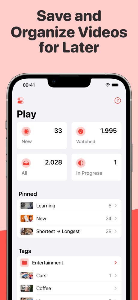 Ajoutez des vidéos depuis n’importe quelle application ou site web. Regardez les vidéos compatibles directement dans l’application pour une expérience simplifiée. Organisez-les avec des balises, ajoutez des notes, attribuez une note par étoiles et bien plus encore. Suivez les chaînes et les playlists pour recevoir les nouvelles vidéos dès leur sortie*. Organisez vos chaînes en dossiers et configurez des filtres par chaîne. iCloud maintient votre base de données à jour sur votre Mac, iPhone, iPad, Apple TV et Apple Vision Pro. Vous pouvez également ajouter et personnaliser des widgets interactifs pour visionner et accéder rapidement aux vidéos depuis votre ordinateur. Play récupère automatiquement les métadonnées et enregistre les vidéos dans vos favoris depuis un large éventail de plateformes. Vous pouvez également ajouter des vidéos manuellement en remplissant tous les champs obligatoires.