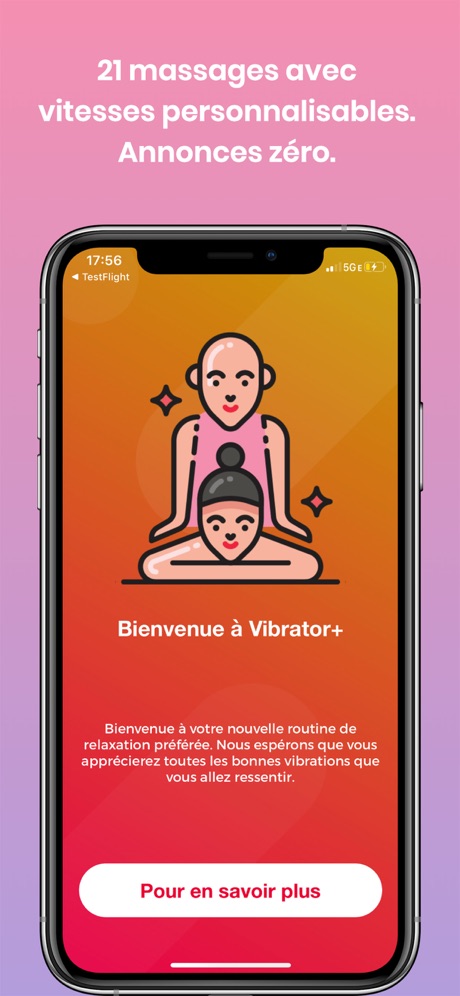 L’application Vibrator + Relax Massager est un masseur mobile parfait qui vous offre un merveilleux massage vibrant. Installez, choisissez votre propre motif, allumez et profitez. Cette application contient de nombreux modèles de vibration uniques. Zéro abonnement. Le massage aidera avec les crampes. Il a été démontré que les vibrations détendent l’esprit et stimulent la croissance des cheveux.