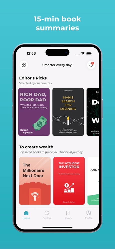Bienvenue sur Smartie Me, l’application de micro-apprentissage idéale pour les apprenants occupés qui souhaitent améliorer leur quotidien. Découvrez une façon plus intelligente d’apprendre grâce à des résumés de livres de 12 minutes à lire ou à écouter à tout moment et où que vous soyez. Que vous soyez en déplacement, au travail ou en détente, Smartie Me transforme chaque instant en opportunité de développement personnel. Si vous aimez les applications comme Blinkist, Headway, Deepstash, Wiser Free, Skillsta, Speedquizzing ou Shortform, Smartie Me est votre nouvelle favorite ! Explorez une vaste bibliothèque en constante évolution de best-sellers non fictionnels sélectionnés sur les thèmes du développement personnel, du commerce, de la psychologie, de la santé, de la productivité et de la finance. Tous les résumés se terminent par des conseils pratiques étape par étape pour que vos connaissances s’ancrent. Ce n’est pas seulement du micro-apprentissage, c’est une transformation de vie en 12 minutes.
