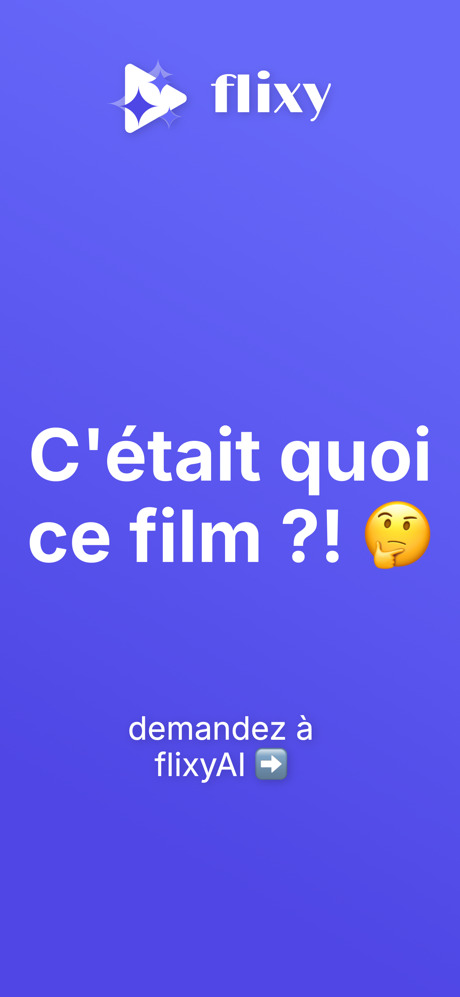 Décrivez un film ou demandez des suggestions, et laissez flixyAI vous aider à trouver la perle rare. Explorez, suivez et partagez vos films préférés ! Quel était ce film ?! Demandez à flixyAI ! Avez-vous déjà eu le film parfait en tête, mais vous ne vous souveniez plus de son nom ? Ou peut-être voulez-vous du nouveau, mais ne savez pas par où commencer ? Flixy est là pour vous aider ! Grâce à notre toute nouvelle fonctionnalité de découverte de films optimisée par l’IA, trouver le film idéal n’a jamais été aussi simple. Que ce soit un classique oublié ou une suggestion personnalisée, Flixy vous proposera la sélection parfaite, selon vos envies.