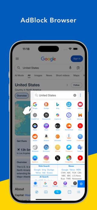Search Ace est le navigateur qui place votre vie privée en priorité. Bloquez les pubs, naviguez plus vite et réduisez jusqu’à 40 % les données sur les sites populaires. Le blocage automatique des traceurs et l’effacement en un geste de l’historique, des mots de passe et des cookies vous libèrent des publicités et suivis indésirables. Design épuré et prise en main intuitive. Accédez en un tap à une recherche puissante, à du contenu riche et à des sites de qualité soigneusement sélectionnés pour trouver l’info qu’il vous faut en quelques secondes. Recherchez simultanément sur 12 IA génératives populaires comme ChatGPT ou Copilot. Sans compte, gratuitement, obtenez des réponses et idées sous tous les angles.